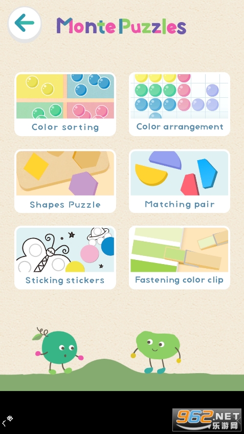 《蒙特难题app》是一款玩法非常轻松和简单的儿童休闲益智游戏,画风看起来非常的小清新,游戏里面有六个不同的趣味小游戏,让玩家去挑战,包括颜色分类,色彩安排,形状拼图,配对,贴贴纸,固定色夹等等,容易上手,让小朋友们在欢乐的游戏氛围中,认识颜色,培养自己的逻辑思维和动手能力哦!