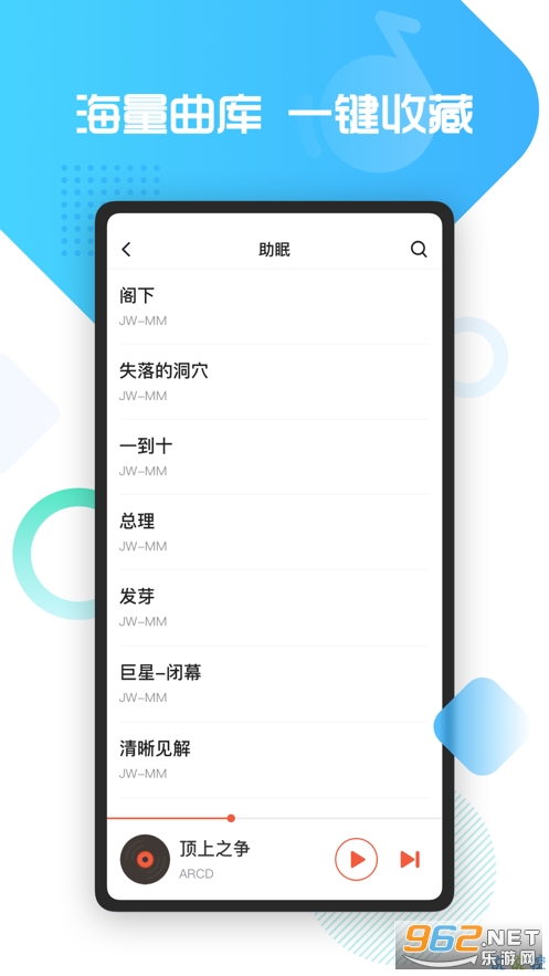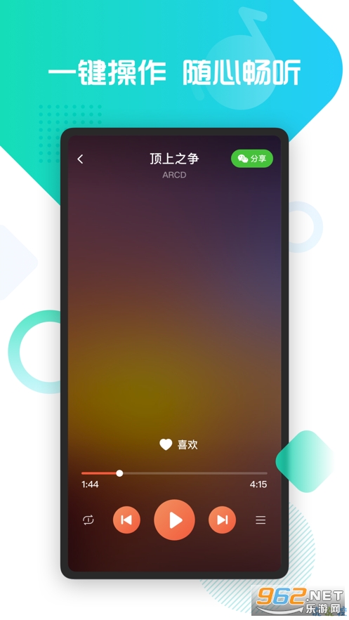 2海量音乐库,免费收听,丰富的音乐资源,丰富的内容,快速搜索。