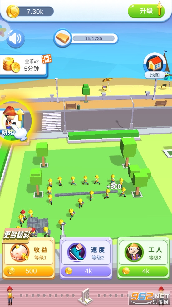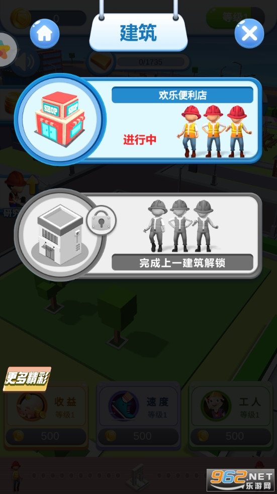 放置经营建造类游戏,可以招募各种工人来帮助自己,可以建造便利店、商城等各种建筑,打造一片繁荣的区域,不断的积攒金币去升级速度、收益等各项属性,喜欢的朋友可以下载试试。