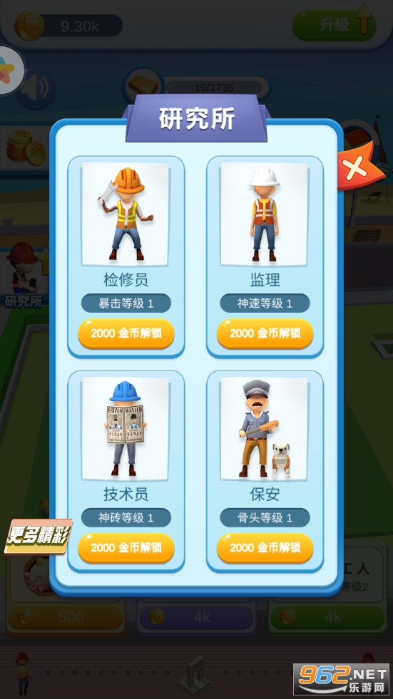 《欢乐搬砖大师游戏》是一款画面清新的建造各种建筑的放置经营类休闲手游,游戏中你将获得一大片的土地,可以在这里建造便利店等各种建筑,招募监理、检修员技术员、保安等各种工人来帮助自己修建管理,可以升级强化,增加工人数量、收益等。