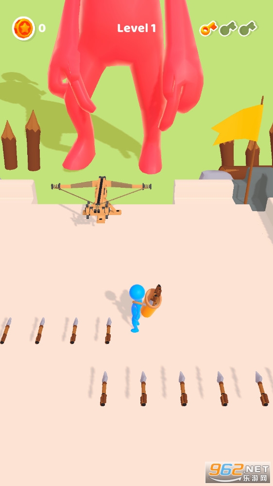 玩家在进入游戏后,快速拾取地面的箭矢,将所有箭矢拾取之后,立即赶到巨人弓弩机旁,将所有的箭矢填入之后,瞄准巨人头部万箭齐发,将巨人直接消灭掉,成功通关!