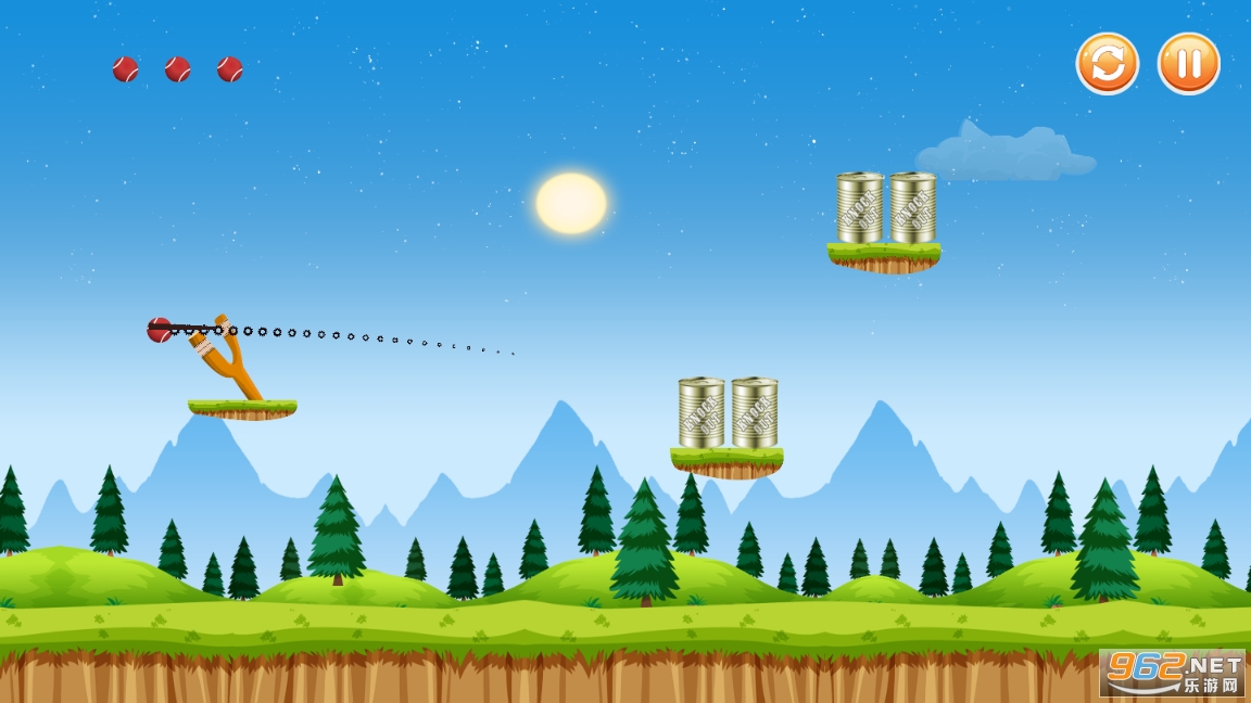 游戏者需要控制自己的炮台发射炮弹,以精确打击远处放置的易拉罐,允许你犯错。