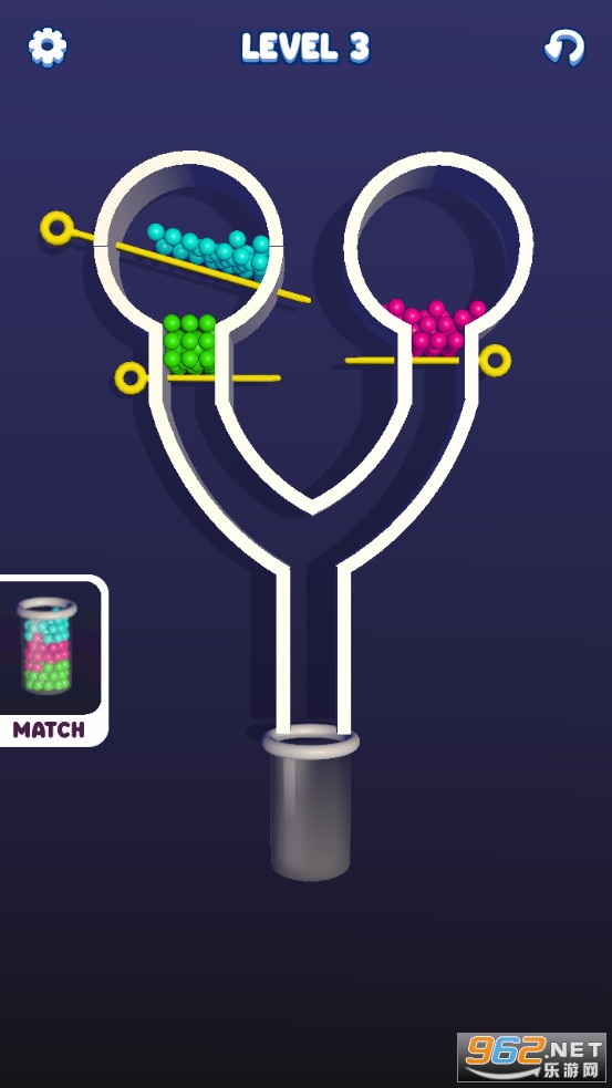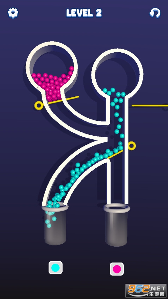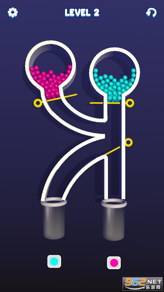 玩家需要按正确的顺序拖动拉针,让小球进入瓶子。