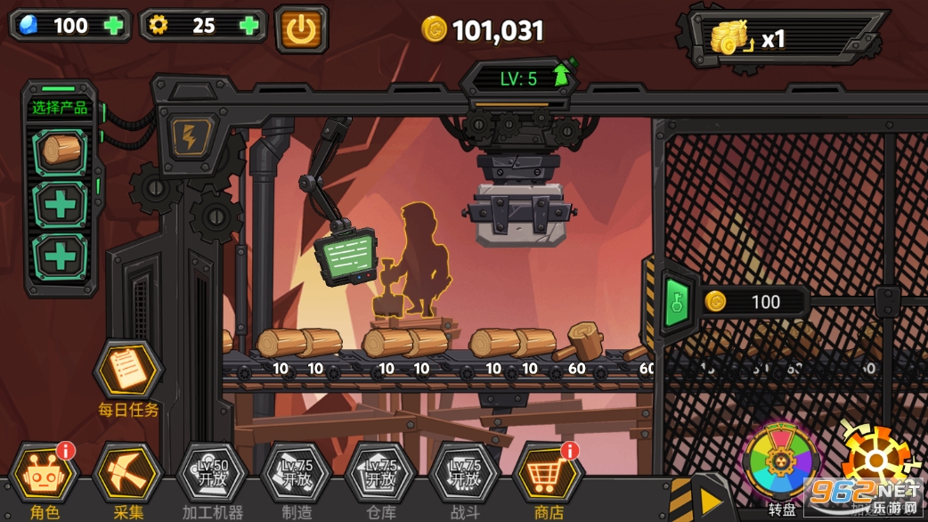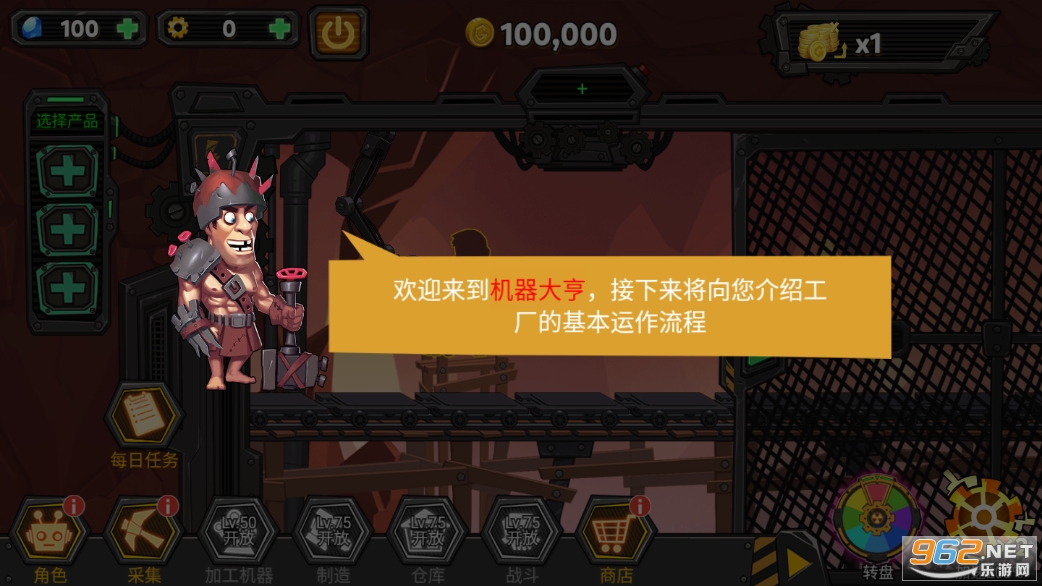 一款机器工厂模拟经营游戏,游戏中有非常多的工厂玩法,不断的招募苦力来进行原材料的获取,招募公投来帮助你管理整个工厂哦,从而实现挂机的玩法,每天上线收一收金币升级修理一下机器即可,非常的轻松哦。喜欢就快来下载吧