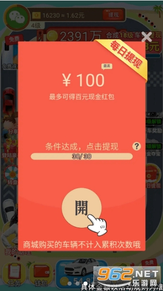 一款能赚钱的小汽车合成小游戏,玩家通过将相同等级的小车进行合成就能赚钱,等级越高奖励越好,提现轻松,喜欢就来962体验一下吧!