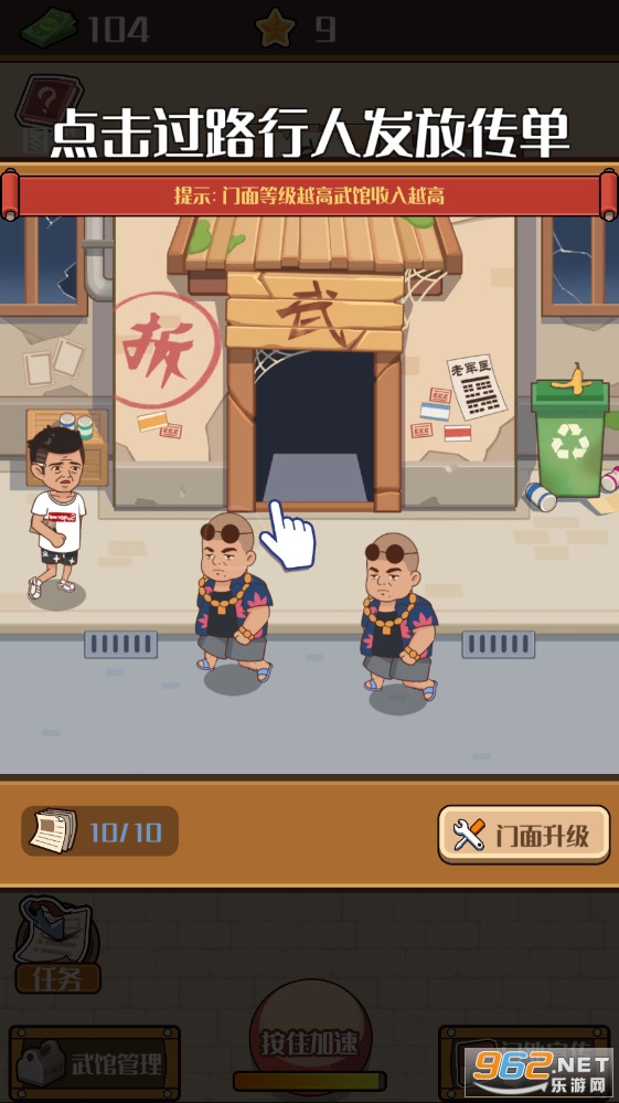 这里将经营武馆,想要把自己的功夫传遍天下,弘扬中国文化以及中华精髓。游戏中放置挂机的玩法,随时都能经营招募弟子来赚取学费,随着武馆越来越强大,那么就能吸引更多人来报名学艺。