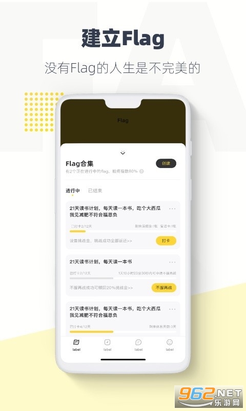 一款全新上线的Flag的开放互动社区交友软件,用户可以在脸疼app里给自己定下各种目标,树立Flag并设立惩罚机制,帮助用户养成良好习惯,也可以去围观别人的Flag,玩法有趣,还能促进社区交友。