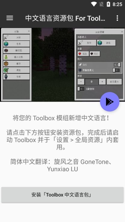 中文语言资源包最新版是一款超棒的我的世界游戏助手工具。大量的素材装备轻松获取,更加完美的道具选择,自由的使用各种指令,轻松地一键获取最新的mod,相当给力!
