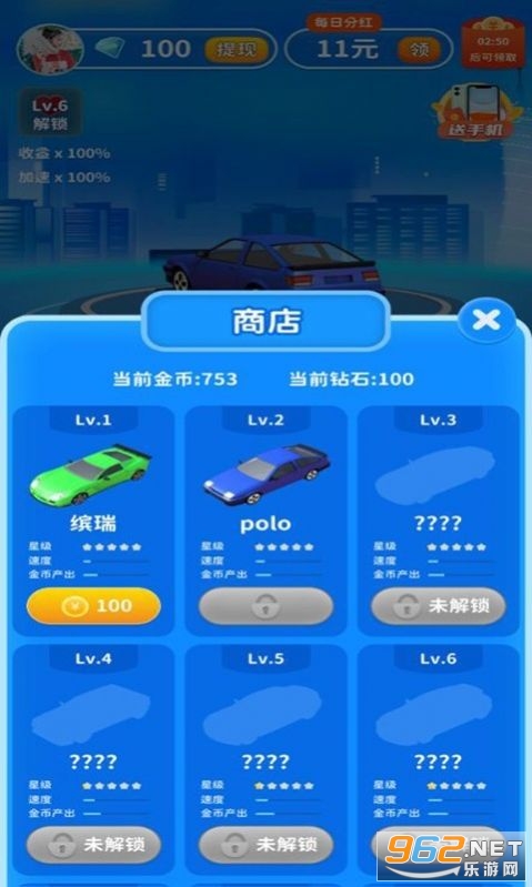 3、收集更多的汽车,完成游戏任务,实现豪车收集的梦想,还能免费领取红包。