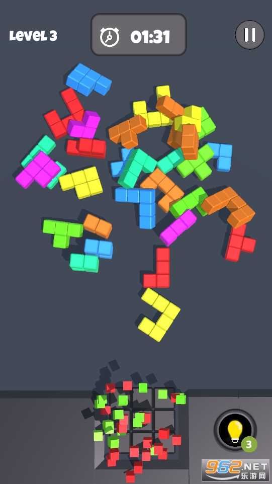 1、画面中有着一堆的立体俄罗斯方块散乱存在着,但大致还可以分清其形状。