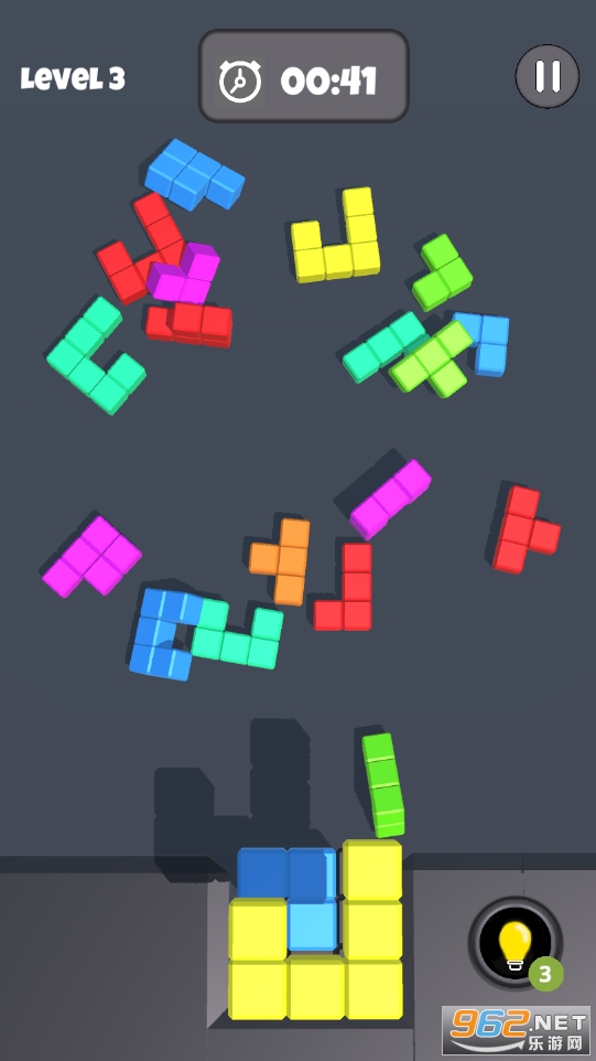 游戏采用立方体俄罗斯方块设计,有着丰富的游戏玩法,玩家需要从很多区块中选择合适的目标进行消除,游戏是对个人想象力的考验,上千道关卡设定,游戏中的你将开始一段十分刺激的闯关消除大作战,各种模式的挑战都十分的精彩