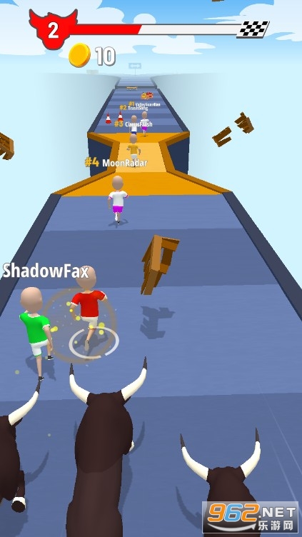 《公牛别过来》是一款魔性欢快的跑酷闯关游戏,公牛们一起发疯了,见到人就撞,疯狂向前奔跑,千万不要被公牛们追上,不然会被它们顶飞的,跑道上会有各种障碍物,小心的避开这些障碍物,大家在全力奔跑中也要小心不要掉下跑道,控制好你的人物。