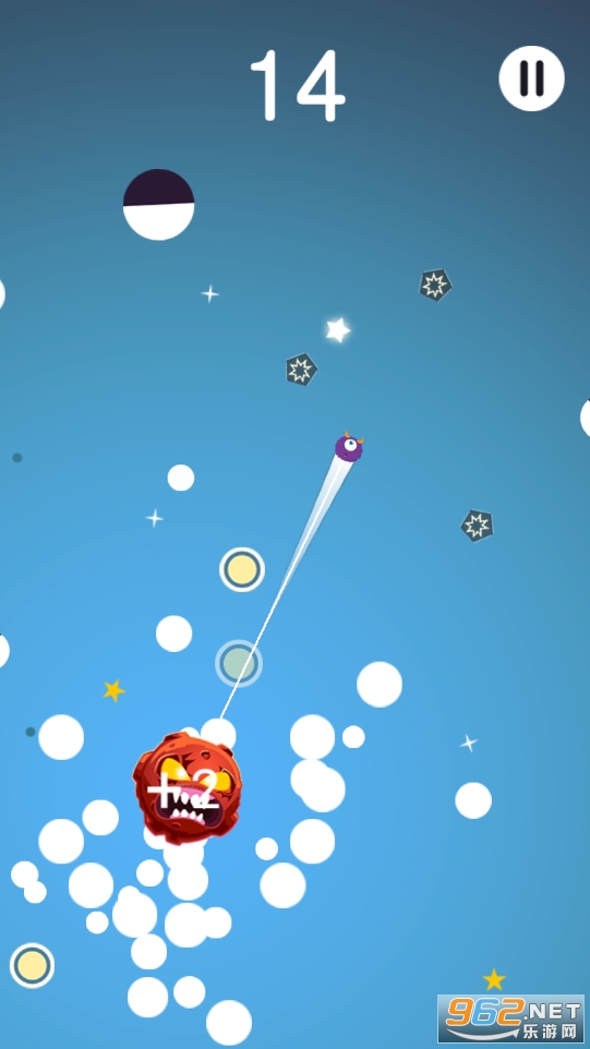在银河系里踩着球球无限跳跃,畅游在宇宙之间。跳得远可以看见神秘的宇宙飞船和其他星球呢。跳跃中收集更多无限能量帮助你得到高分。得分越高太空颜色也会随之变化,伴随着音乐节奏体验不一样的遨游。不断出现的白色球球助你逃离中心的魔王,降落时小心掉入其中!跳跃和降落时避免碰撞到黑洞,它会随时出现吞噬跳跃的你。