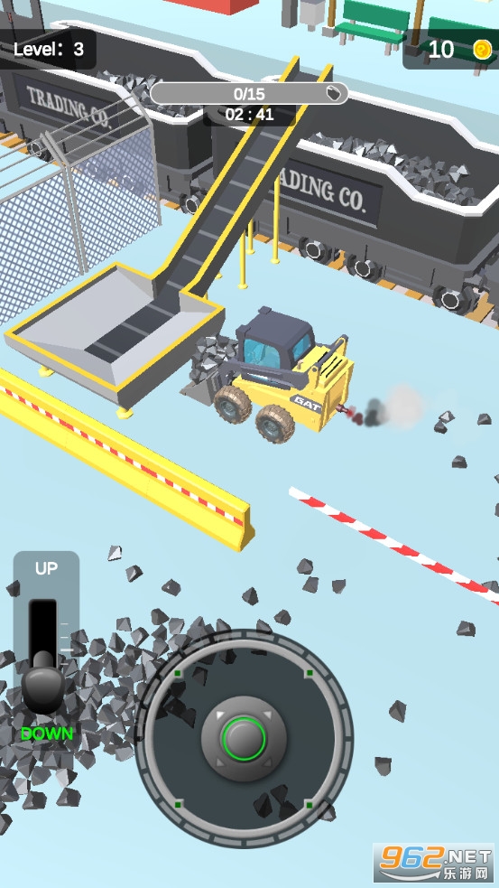 《Bulldozer 3D游戏》是一款画面精致的以推土机为题材打造的放置养成类休闲手游,游戏中玩家可以驾驶一辆推土机去冒险,可以去铲起碎石、砖块等物体,让后将这些物体运送到传输带上获得金币奖励,可以升级技能来提高推土机的容量、速度和收益。