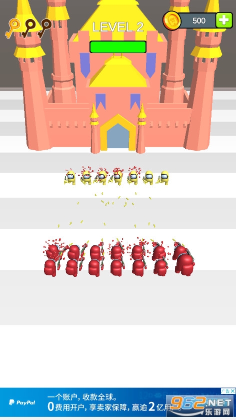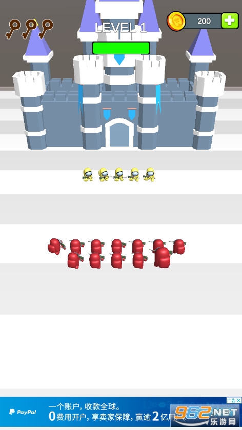 一款非常有趣的休闲闯关游戏,在这款游戏中你需要找到足够的队友一起攻占城堡,游戏的操作简单容易上手,躲开各种各样的障碍,应对不同的挑战,击败所有的敌人,推荐给喜欢休闲游戏的玩家。