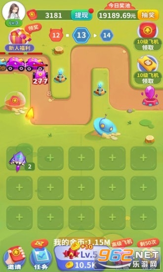 《魔性小飞机红包版》是一款休闲为主的魔性塔防游戏,游戏中玩家们需要不断的生产飞机来进行防御,不断的生产飞机合成更大更强的飞机来换取收益,游戏中每到一个阶级都会有红包相送哦,还是可以提现的哦,快来下载试试吧