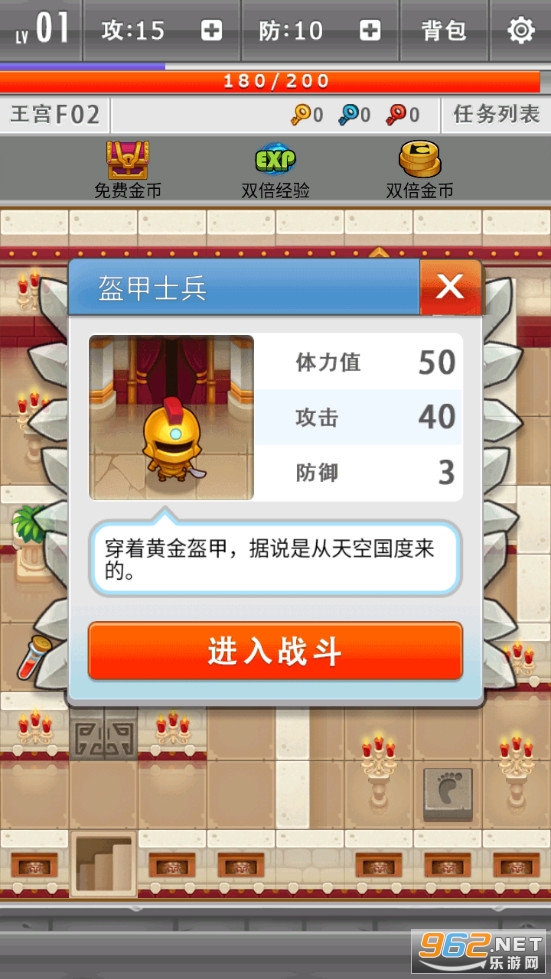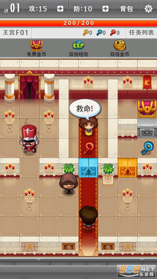 公主被恶魔掳到魔塔里囚禁着,国王招募了勇者前去拯救公主。你要击杀各层的小怪及boss,增强角色的属性、收集钥匙以及各类神秘的道具,不断让自己变强,成为拥有神之血裔的勇士!游戏中杀敌策略需要先思后行,方能顺利通关。