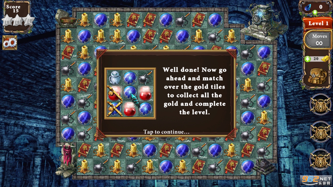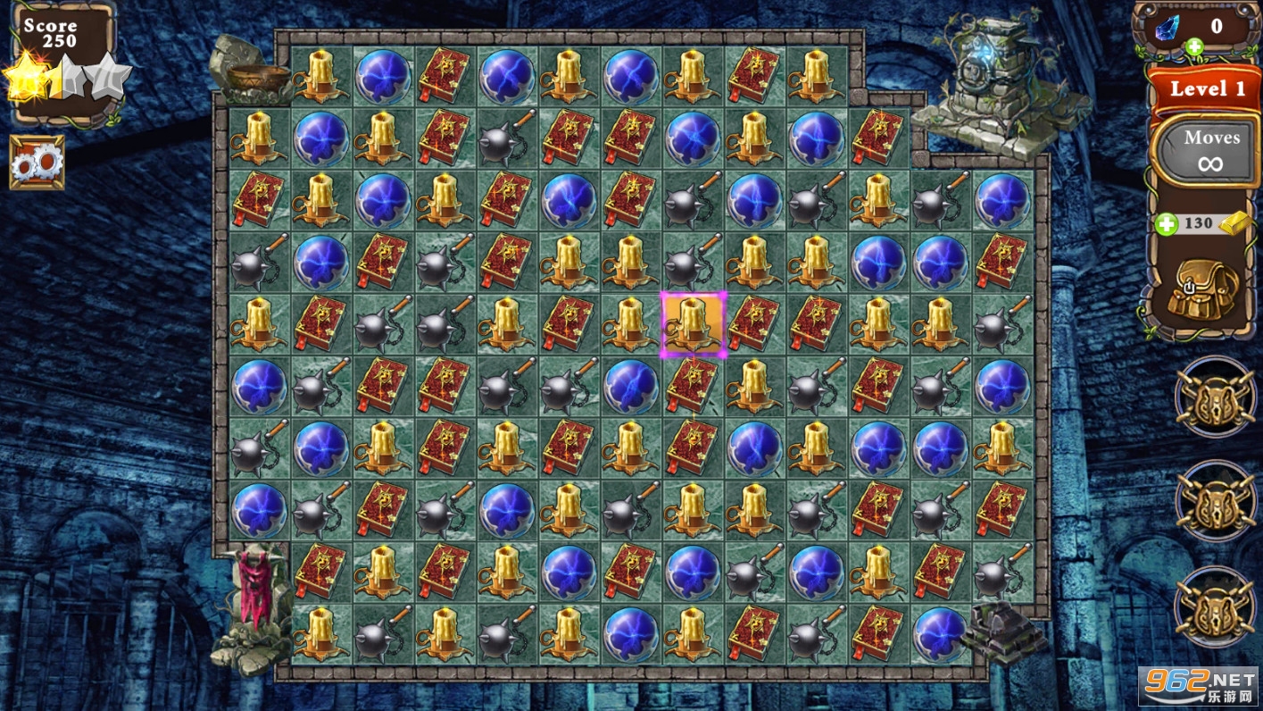 在这场幻想三消冒险中探索克利夫蒙特城堡的神秘地牢!穿越巨大的关卡,收集宝石和宝石,克服数十种障碍。免费享受我们的幻想游戏。在这个幽灵般的冒险深处困惑自己,寻找有价值的物品,以帮助重建被黑龙大师德拉戈(Dragor)破坏的城堡。