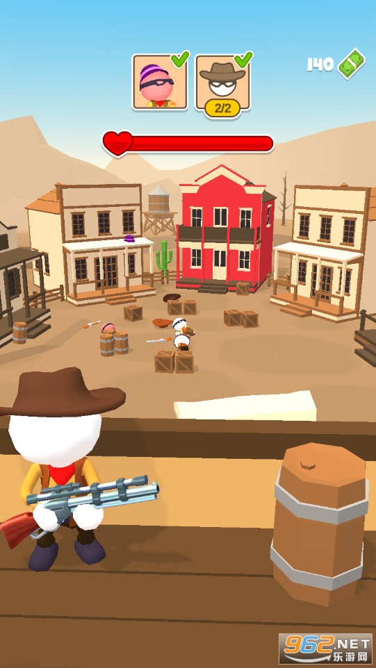西部牛仔枪战以第一人称视角下的枪战游戏为主,不断的射击狙杀嫌疑人目标来完成任务,每一局的第一枪的以后就会被发现哦,一定要小心行事,在不消耗血量的情况下三星通关哦,喜欢就快来下载吧