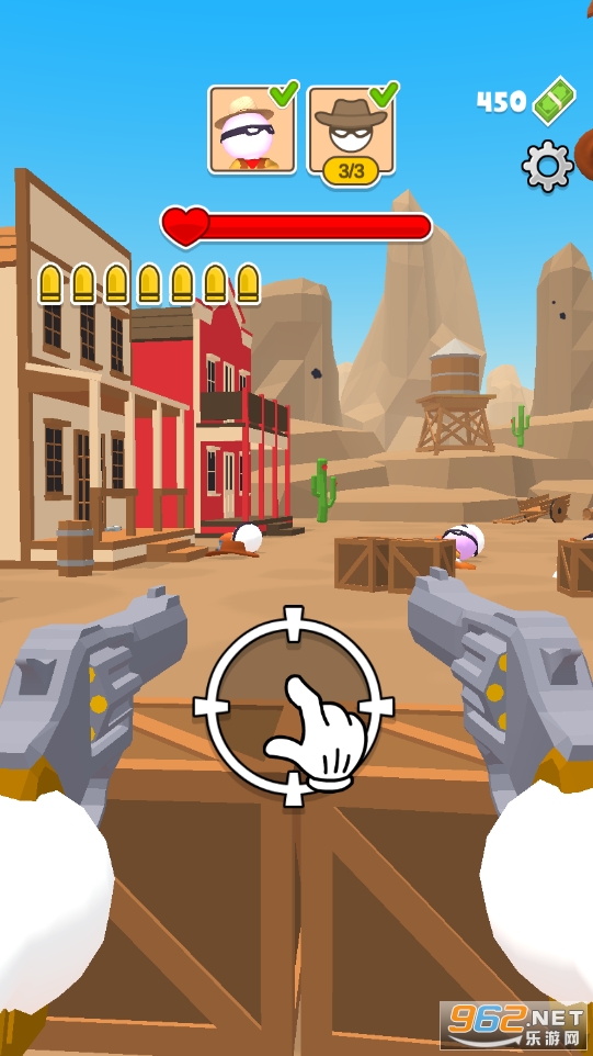 游戏采用西部牛仔的主题来创作,还原西部牛仔的射击体验,拔枪、瞄准、射击、命中,这是你在游戏中需要做的,游戏关卡内容众多,你需要通过你熟练的技术一个接一个地杀死敌人