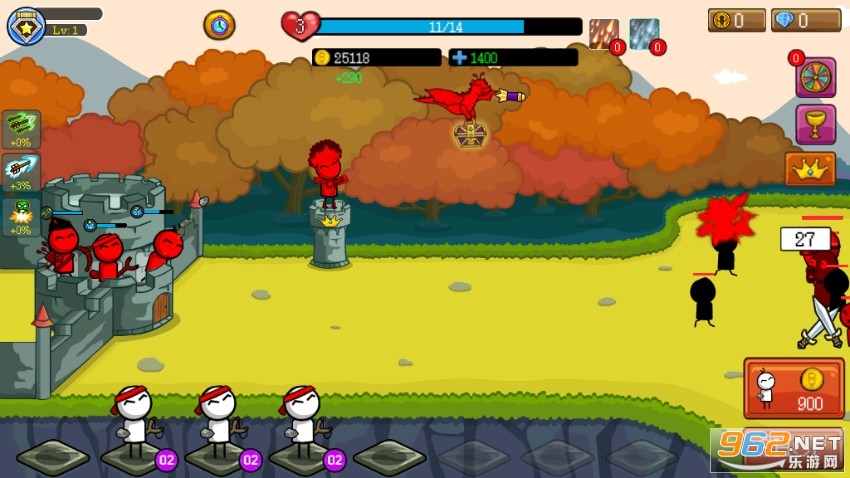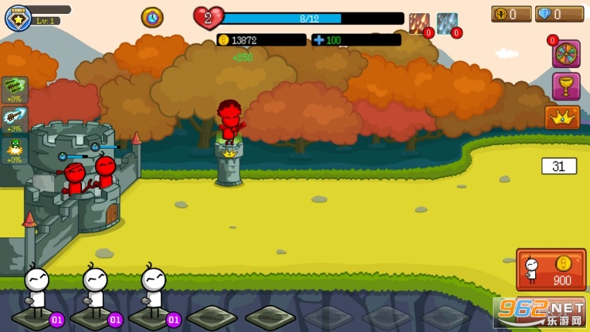 1、邪恶势力拥有卡通塔,想要占领它,因此您需要保持打牌以安排战士们进行防御。