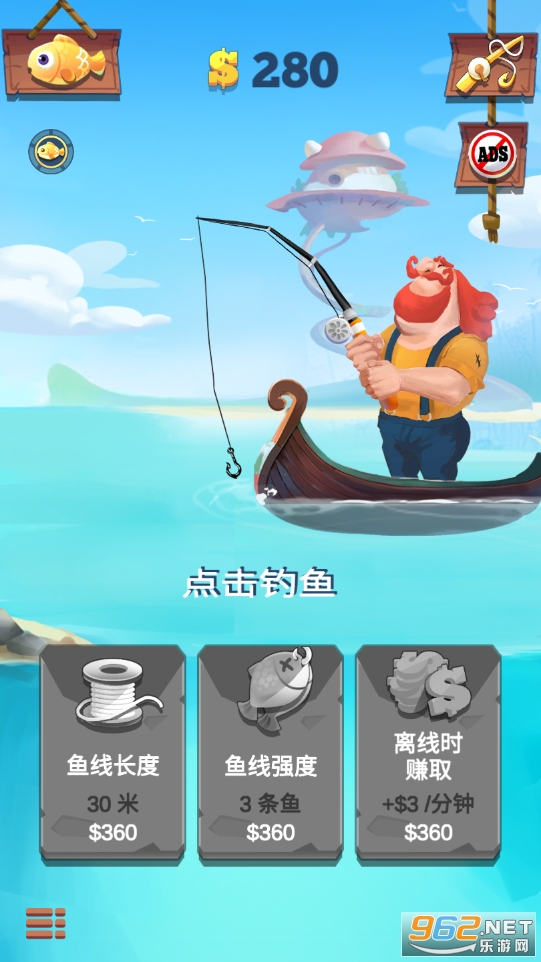 非常好玩的钓鱼游戏,游戏中有很多不同的鱼类哦,玩家们需要升级你的鱼线长度才能钓到稀有的鱼类,根据鱼类的稀有度来获取钱财哦,升级的你的鱼线鱼竿,钓起来大鱼吧