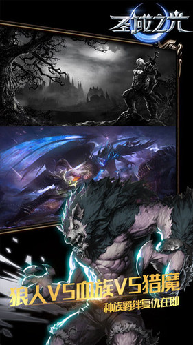 《圣域之光》是一款拥有暗黑哥特式的3D锁视角RPG类格斗手机网游,采用Unity3D引擎,以吸血鬼神秘色彩为题材,全新的战斗模式、极致的操控体验和丰富后期玩法,构建了以吸血鬼法师、狼人剑士和恶魔猎手组成的魔幻世界观,剧情跌宕起伏,代入感十足,在循序渐进的暗黑故事中,逐步引导玩家参与到三大势力之间的宿命恩怨对决中来。同时,游戏还独创竞技场、天梯赛、恶魔塔、精英副本、宝石神殿等众多玩法,誓要为玩家打造一款全新体验的手游。