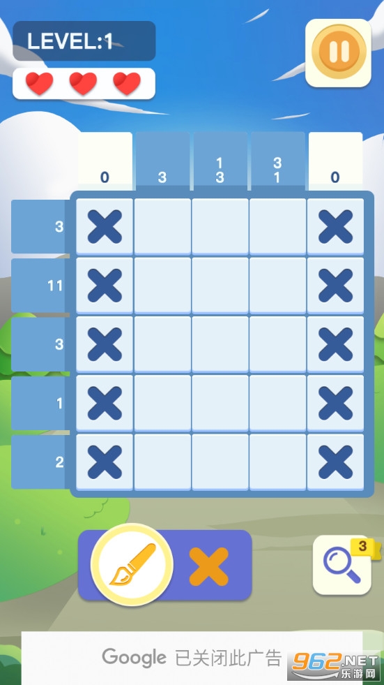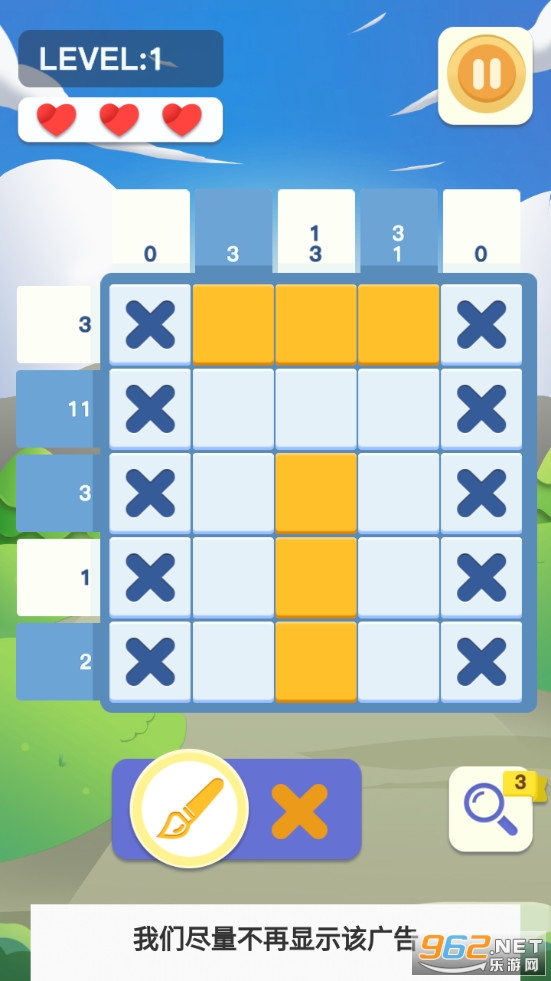 趣味的填空游戏,根据周围的数字提示在合适的地方填上方块,类似扫雷的数字提示,全部填完后组成钥匙等各种不同的图案,考验玩家的智慧,喜欢的朋友可以下载试试。