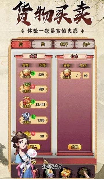 内容十分丰富的创业模拟游戏,开商铺招聘门客为你服务赚取丰厚收益,更有全新大航海玩法上线,踏上商贾之路,积累更多的财富,不管是做生意还是养六畜,选择一个好的地段开设自己的店铺,贩卖各种商品,同时招募古代名人为自己打工,不断扩展店铺吸引更多客人,从此走上精彩的人生!