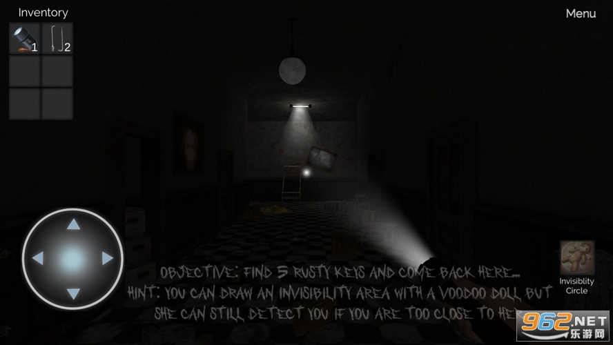 游戏的整体画面风格是纯暗黑风格的,给人一种非常压抑的感觉,你在游戏中唯一可用的道具就只有一个手电筒,你需要寻找能够杀死邪恶幽灵的布娃娃,但是如果因为寻找的过程时间太长耽误了很久,那么她就会出击来对你进行追杀!