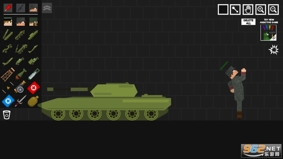 在这个布娃娃游戏中,需要使系统中包含很多东西,您需要三种类型的人兵。此外,您还有一个水箱和许多其他可以使用的机器。