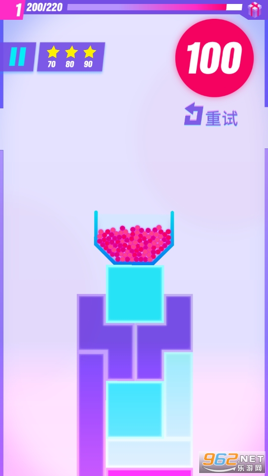 非常好玩的一款休闲物理游戏,玩家需要慢慢的抽取下面垫的方块来让盆子平衡哦,还有多种不同的小方块皮肤等你来解锁,用心细致的将小盆子慢慢放下,拿取三星的高分吧