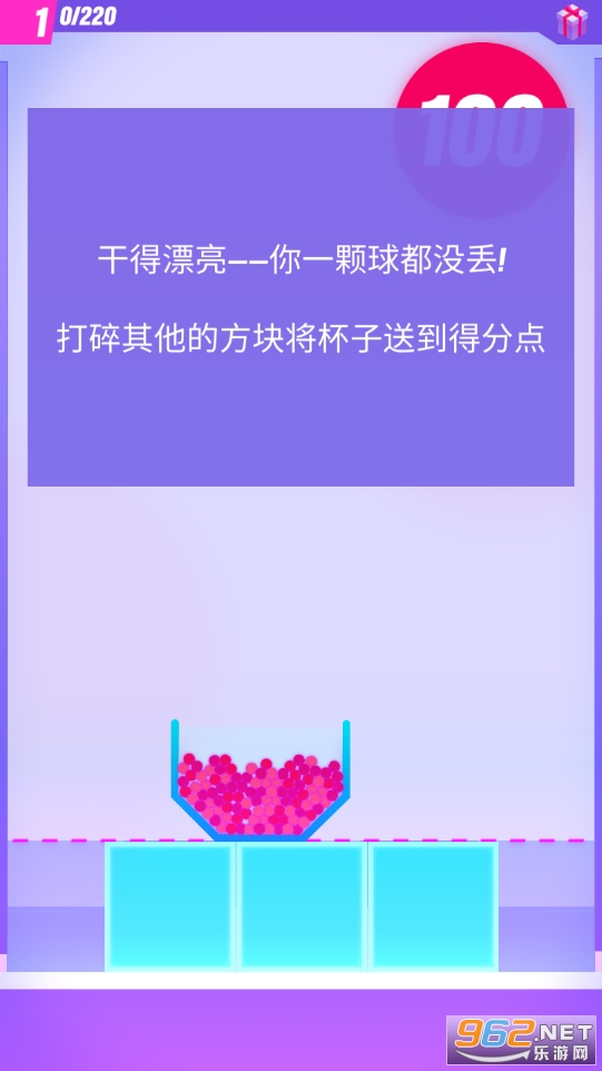 《不要让球洒出来SPILLZ》是一款极为有趣又充满魔性的休闲娱乐游戏。一个装满了100颗小球的容器被放置在了玻璃方块的顶端,点击这些玻璃方块让容器带着小球不断的向底层下落。但是一旦下落的太快或是没有保持好平衡,小球就会从容器中洒出来哦!感兴趣的话就快来下载吧!