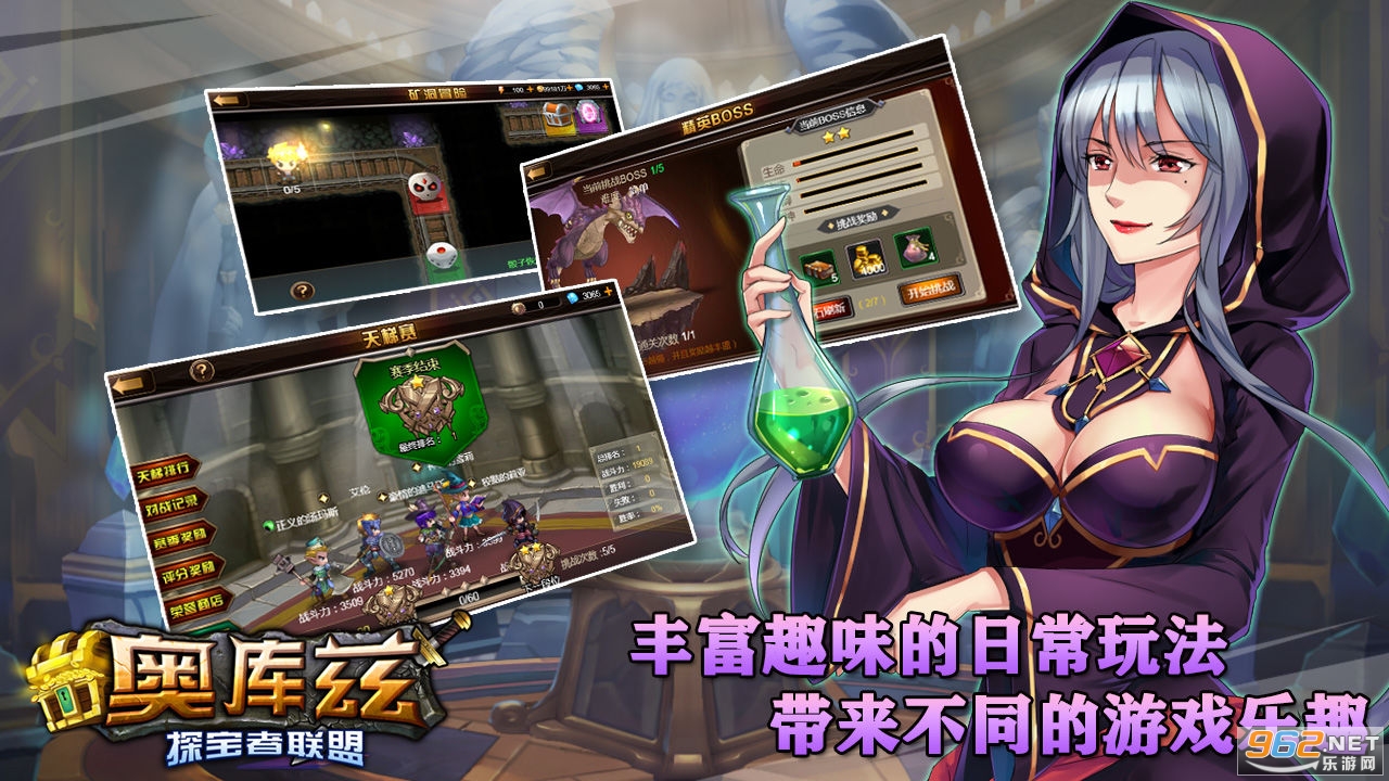 《奥库兹探宝者联盟》是一款奇幻题材的探宝RPG。地下城探险、机关解谜、挑战凶猛的敌人、收集各类稀有珍宝、雇佣能力各异的同伴培养他们协助冒险,获得各种强大的武器装备,打造一支所向披靡的寻宝梦之队。