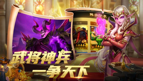 招募各域各阵营强大的英雄们,并跳出原有的阵营框架为这些英雄合理搭配,创建强大的战兵军团。所有战斗都以军团对抗的形式展现,感受百万大军同场竞技的恢弘场景