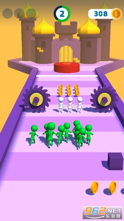 如果只操作一个人闯关的话可能会更简单,但是我们的目标是让更多的人加入到队伍中来,最终的成绩也是和队伍人数挂钩的,所以我们需要去控制一群人闯关,小心前面的障碍物以及各种机关,让更多人成功到达终点。