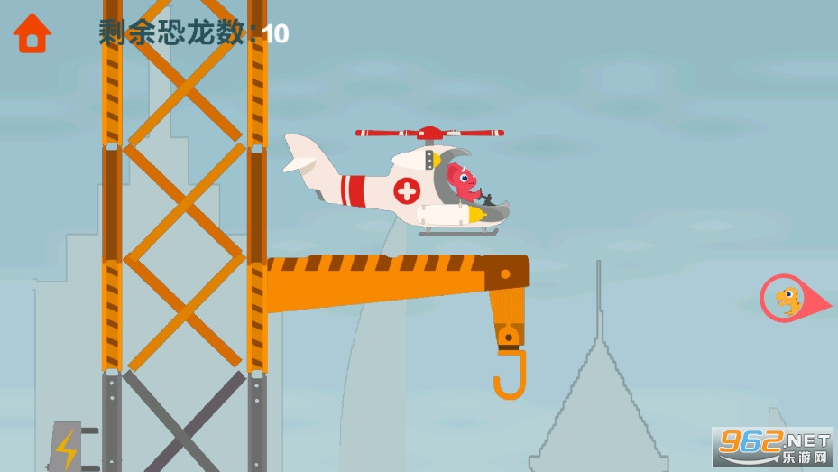 趣味的救援游戏,有着多种不同的直升机可以解锁体验,上下左右滑动屏幕控制直升机的方向,寻找被困在房屋上的恐龙,救助它们,喜欢的朋友可以下载试试。