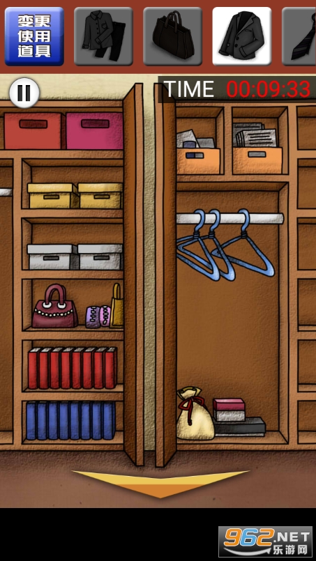 首先是墙上的画,向下滑动可以揭下来,里面有一个【钥匙】。然后下面三个抽屉都可以打开,随机出现【鞋】。