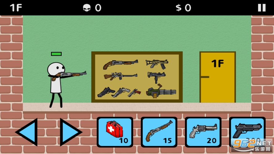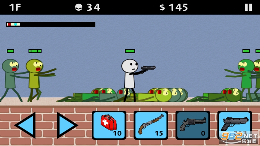 3、一旦你准备好战斗,选择一支枪装备你的stickman并为僵尸攻击做好准备。