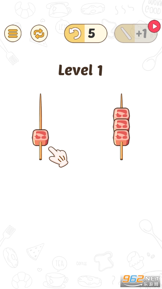 2、轻松休闲的游戏玩法,将相同食物串在一起。
