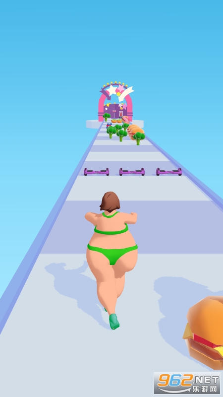 2、不断前进,道路上将会有很多黄瓜和汉堡,而吃汉堡会变胖,如果吃黄瓜就会变瘦。