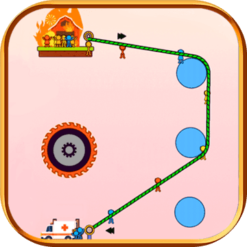 《绳索益智游戏》是一款画面清新的利用滑索救人的益智闯关手游,游戏中有着一群人被困在了着火的房屋中,玩家的任务就是利用一根绳子让这些人全部安全的滑落到制定的地方,点击滑动屏幕可以控制绳索缠绕的轨迹,合理的布置线路,将人全部的救出。