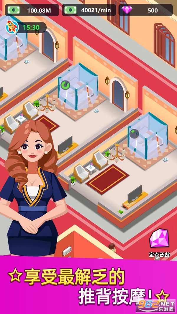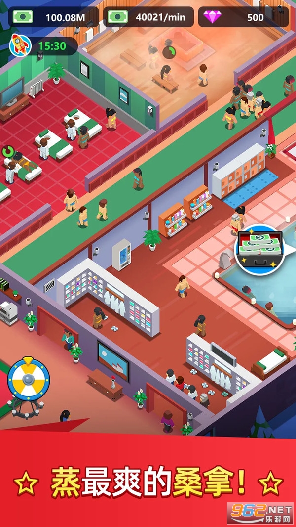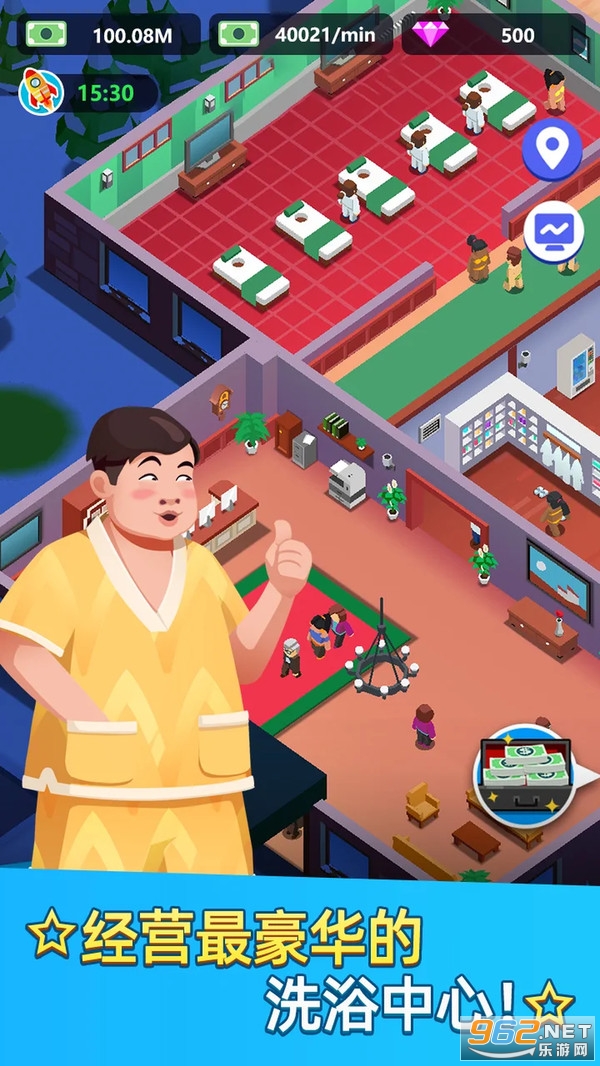 一款趣味经营的游戏,游戏中玩家经营了一家自己的洗浴中心,需要招募大量的员工来管理你的店,给顾客提供各种服务让顾客满意,做好店铺的名声,不断的扩大自己的店铺,成为最强的洗浴中心。