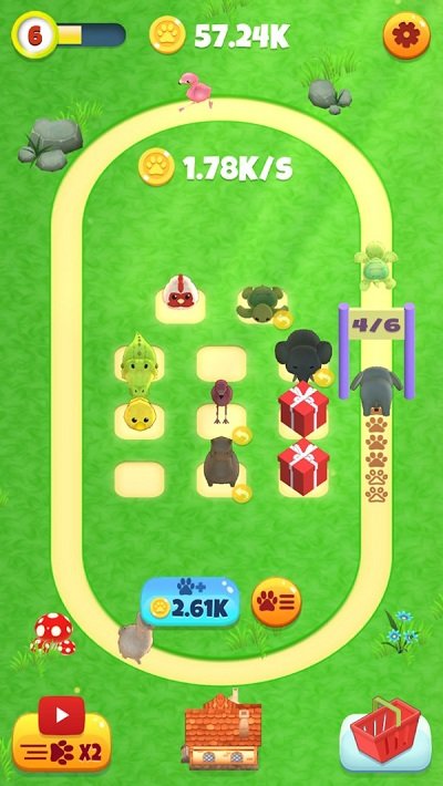 合并动物车手最新版是一款放置类养成手游,在这里玩家将成为农场的主人,您需要饲养很多小动物,每两个相同的小动物可以合并起来拼成一个全新的小动物,这是一个比较休闲的游戏,游戏还可以放置着挣金币,比较省事的一个游戏!