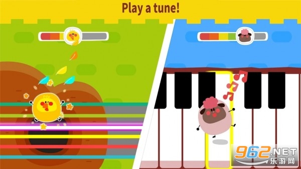玩家可以用过乐器来弹奏出美丽的音乐以及模仿出动物的声音哦!游戏画面非常的卡通化,给人一种非常童真的感觉哦!