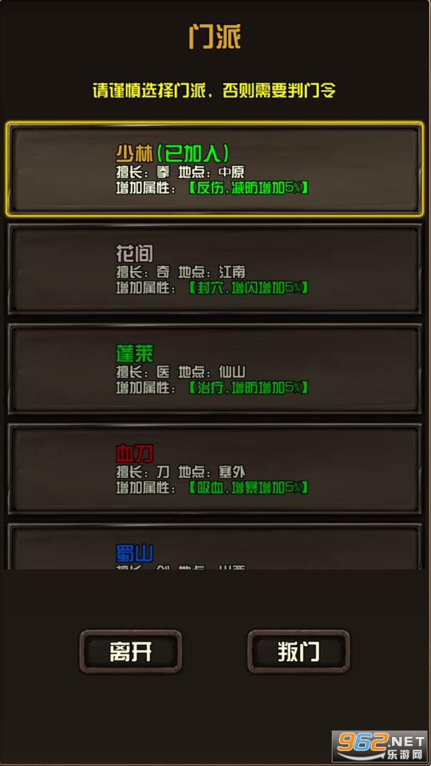文字类放置游戏,以武侠为题材,有着众多的门派,可以学习各种技能,收集大量的装扮,体验精彩的剧情故事,不过有一些玩家说游戏很坑,请酌情进行体验。
