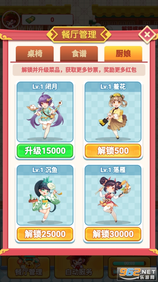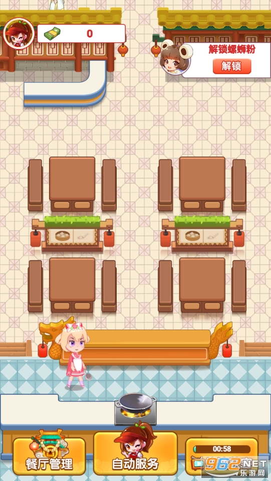非常好玩的一款餐厅模拟经营游戏,游戏中有非常多的设施与厨娘等待着玩家们的解锁