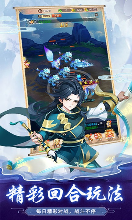 1、经典东方生活故事题材,策略回合的战斗玩法,考验玩家脑力,随时开启全新冒险;