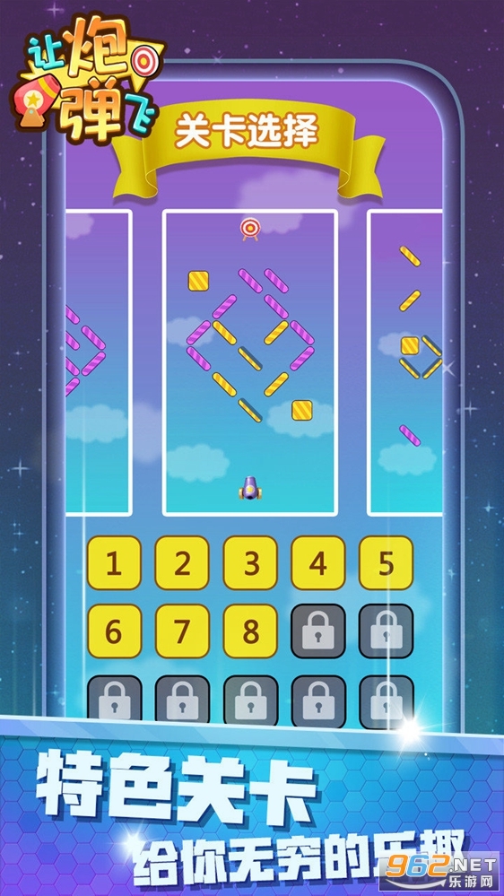 趣味的弹射闯关游戏,游戏中玩家将控制一个大炮去冒险,点击屏幕发射炮弹,通过物理弹射来改变炮弹飞行的方向,击中物体,有着丰富的关卡可以挑战。