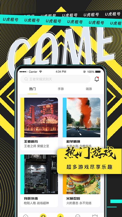 u虎租号官方正版是一款游戏免费交易平台,这里涵盖了各个设备端的游戏,包括手游、端游等等平台,在这里你可以用超低的价格租到氪金账号,各种神装道具应有尽有,感兴趣的朋友赶快来下载吧!